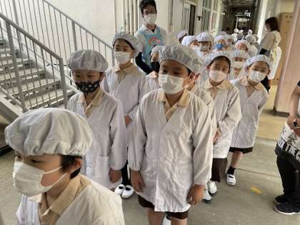 給食委員会の児童が今日の献立や服装のチェックなどをしてくれています!!