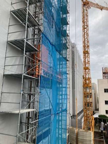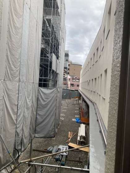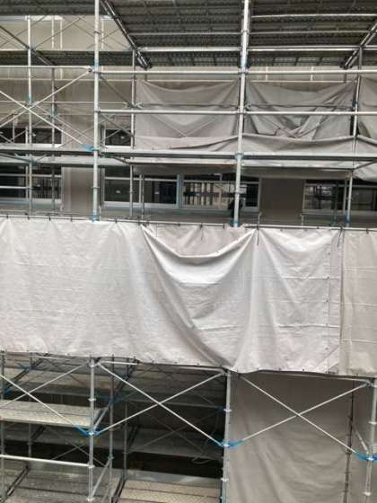 校舎の躯体工事が進み、1階部分から順次、内装工事が始まっています。子どもたちの動線をイメージしながら電気・水道の配管が進んでいます。窓や教室も徐々に形になってきています。