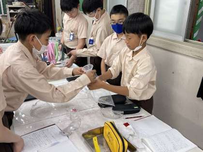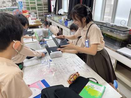 6年生は「体に吸収された酸素はその後どうなるのか、また、吐き出した息には二酸化炭素の割合が増えていたのか」について、班で話し合いました!!