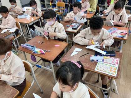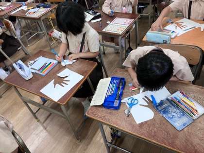 また、学級目標を掲示するときの手形を作りました。