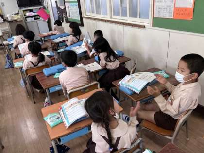 2年生の音楽では、「子犬のビンゴ」を歌いました。
