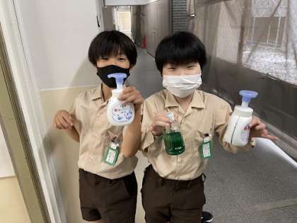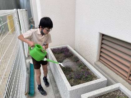 栽培美化委員会は水やりを、健康委員会は手洗い用の石鹸の入れ替えを。