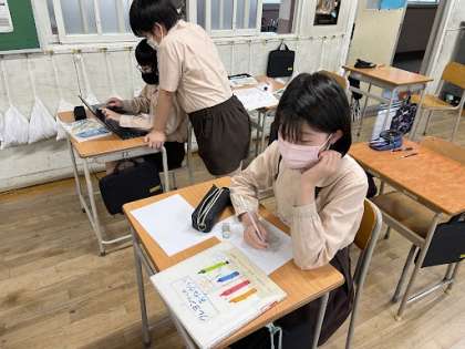 6年生に委員会活動について、知りたいことを聞いて、メモをとっていました!!