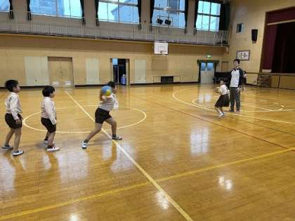 3年生が講堂でバスケットボールやドッジボールをして、元気に遊んでいました!!