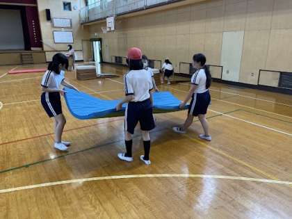 6年生が体育の片付けをしています!! みんなで協力して片付ける姿はさすが6年生です!!