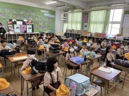 2年生が帰りの準備をして、静かに待っています!もうすぐ引き渡し訓練開始です!