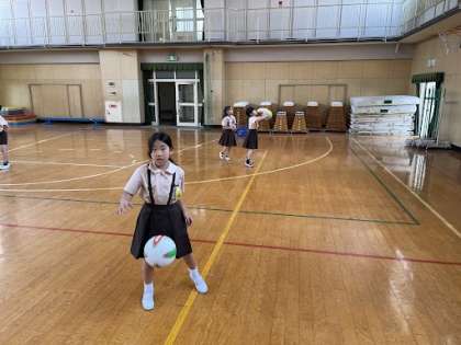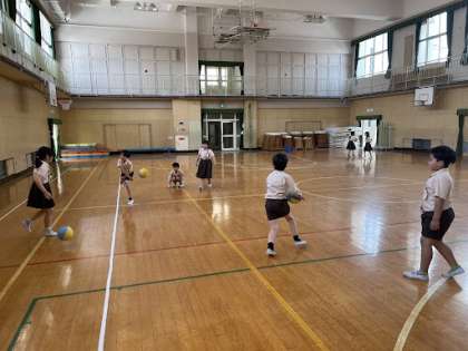 休み時間、3年生が講堂でバスケットボールやボール遊びをしていました!!体を使って、健康的ですね!!