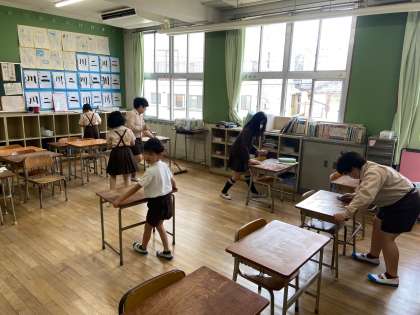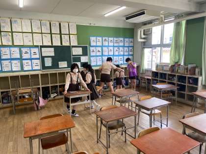 3年生が社会見学に行ったので、たてわりの班で3年生の教室の掃除をしました。