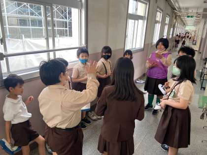 高学年の児童が低学年の児童にわかりやすく教えていました。