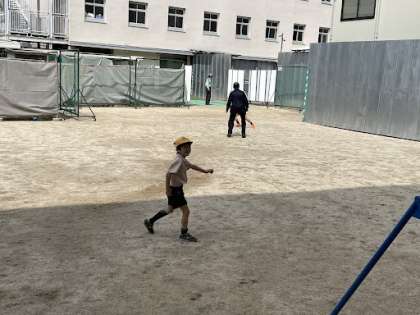 1時間目の休み時間、運動場では低学年が教頭先生と鬼ごっこをしていました!!