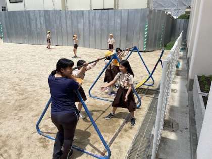 休み時間、運動場で遊んでいる4年生です!