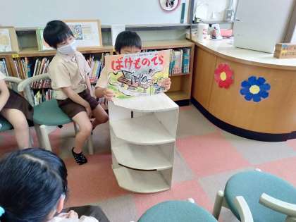紙芝居で読み聞かせをする人や、静かに読書する人。