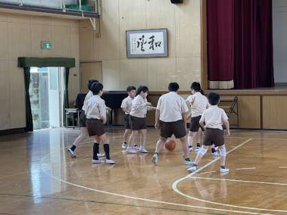休み時間、5年生が講堂でボール遊びしていました!!