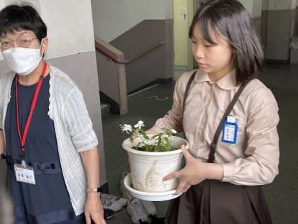 栽培美化委員会の児童が水やりをしてくれています!! ありがとう!