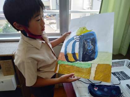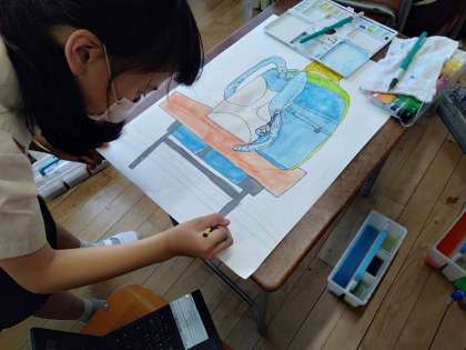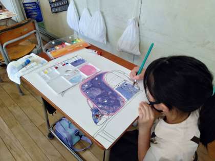ランドセルの縫い目を1針1針色塗りをしていきます。