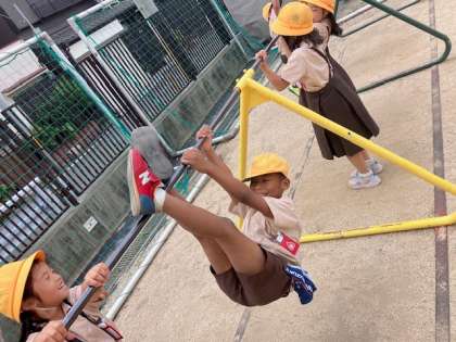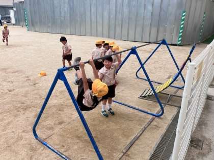 1年生は休み時間に鉄棒や鬼ごっこをして楽しむ人がいっぱいいました。
