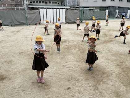 1年生が運動場で元気に遊んでいました!!なわとびしたり鉄棒したり、と楽しそうでした!