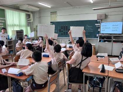 英語では、仲間外れの単語を考え、正解したらポイントを獲得できるというゲームをしながら単語の学習をしました。