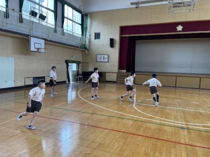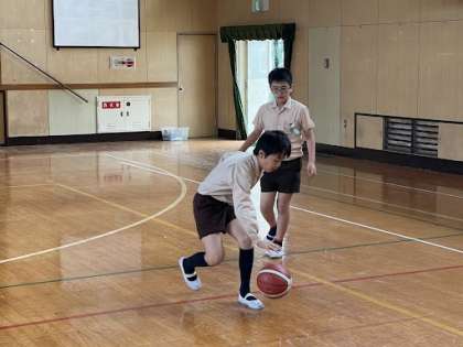 お昼休み、講堂で5年生がバスケットボールをしていました!!