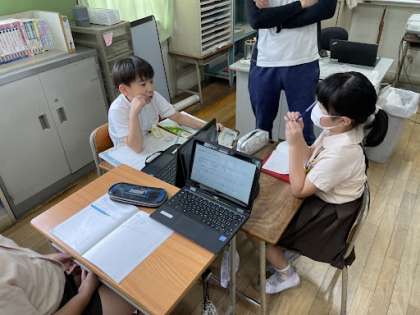 「風の強さを強くすると、ものを動かすはたらきは大きくなるのか。」を、調べるための計画を班で相談しています!!