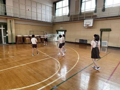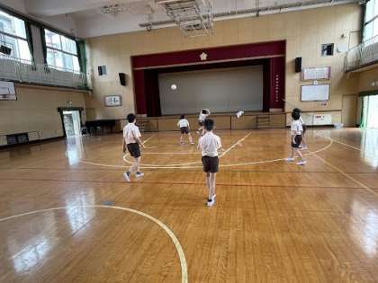 6年生が講堂でバレーボールをしていました!!