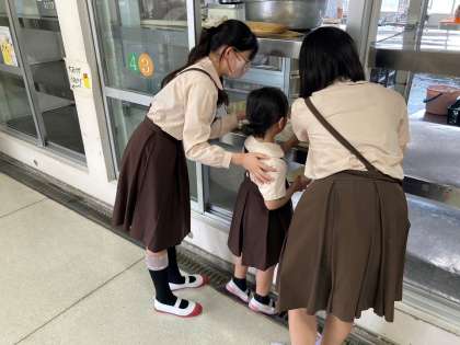 1年生が給食の返し方に困っているところを6年生が気づいて、優しく教えてあげていました!さすが6年生!よく見ていますね!