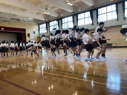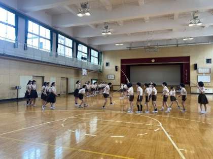 6年生は学級活動で話し合った、「6年全体で仲を深めよう。」を目的に各クラスで計画した遊びをしました。今日は1組が考えた大縄跳びをしました。