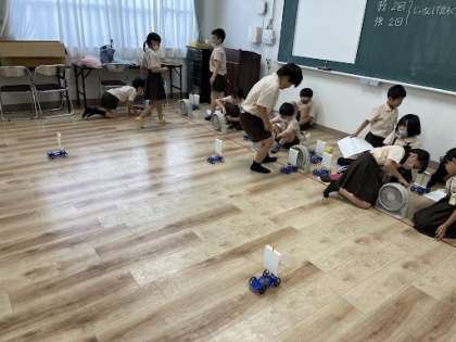 3年生は、「風の強さを変えると、ものを動かす働きはどのように変わるのか」について、自分たちが考えた計画をもとに、実験を行いました!!