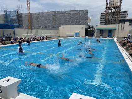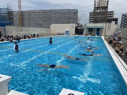 平泳ぎ、クロールの練習をしています。今日も湿度と気温が高く、こまめに水分補給をしながら熱中症に気をつけています。