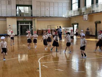 2年生が講堂で鬼ごっこをしています。