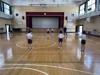 また、他の時間の休み時間には講堂で先生とドッジボールをしていました!