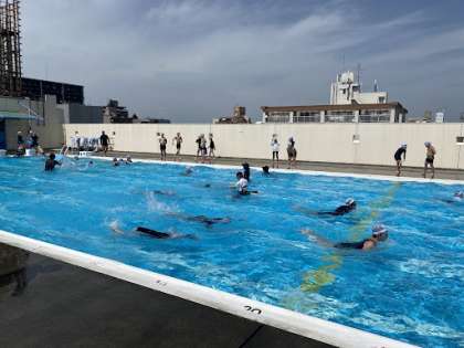 5年生は水泳の時間にクロール、平泳ぎの練習をしていました。