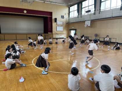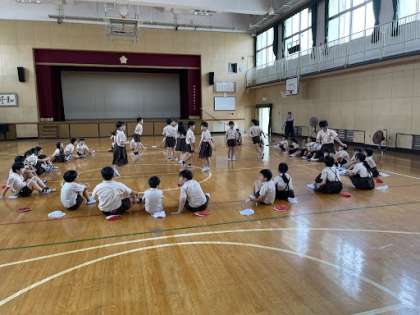 4年生と3年生が講堂で「ペア学年遊び」をしていました!!