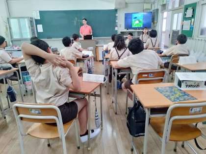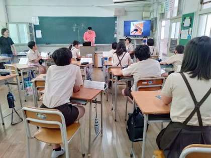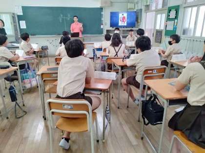 英語のヒントを聞いて、前に座っている人が画像が何かを当てるクイズをしました。