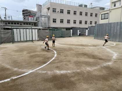 運動場では3年生が元気に遊んでいます!今日はいつもより暑さがマシですね!