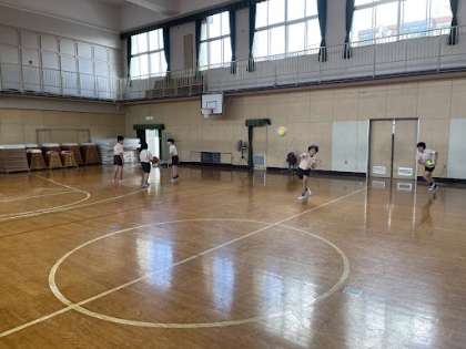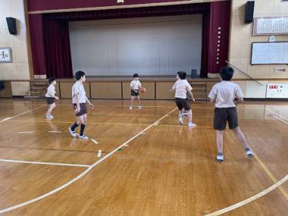 5年生が講堂でバスケットボールやドッジボールをしていました!!まだまだ暑いですが、みんな元気ですね!