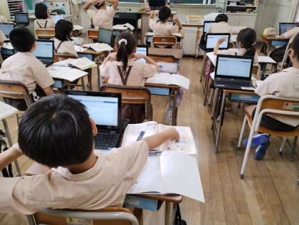 タブレットを使って、物を分ける操作をしました。あまりのあるわり算の答えがよりわかりやすくなりました。