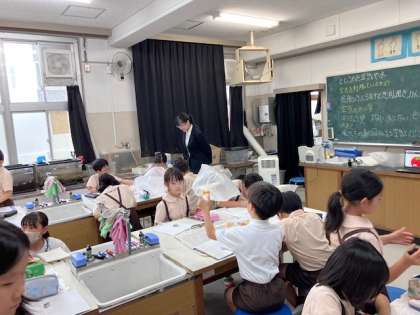 理科で、空気の特徴を子どもたちと一緒に考えていました。