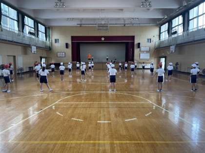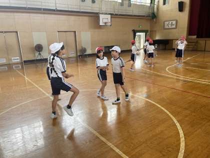 四年生がex体操の練習をしていました!!自由振り付けのところを考えていましたよ!