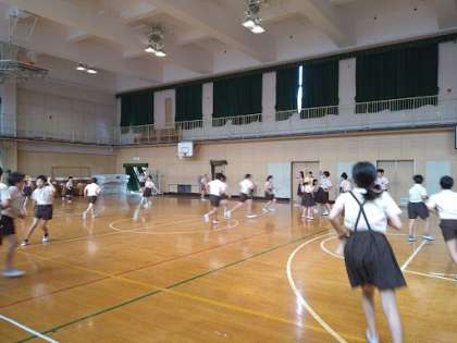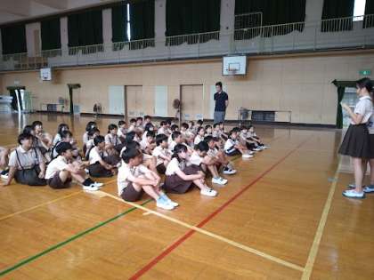 6年1組は3年2組とこおりおにをしたりあいさつ運動の取り組みを呼びかけたりしました。