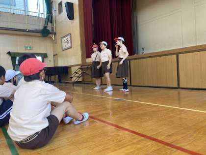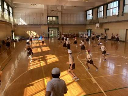 自己紹介ゲームで、お互いの名前を呼び合ったあと、鬼ごっこで思いっきり体を動かしました。あいさつ運動の宣伝もしました。3年生もあいさつ運動にいっぱい来てくれるといいね!!
