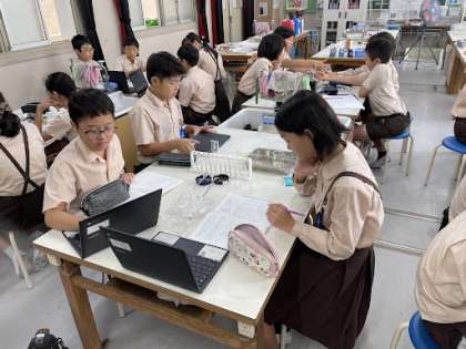 6年生は「塩酸に溶けた金属から出てきた固体は、元の金属と同じ性質なのか」について調べました。