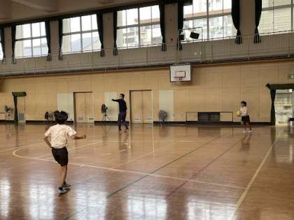 3年生は講堂でドッジボールをしていました!