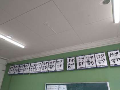 6年生は、書写の学習で毛筆「夕やけ雲」を書きました。めあて達成に向けて、丁寧に取り組みました。