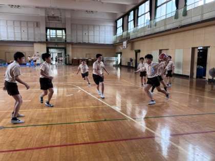 6年生の運動委員会の人が、5年生と一緒にバスケをしてくれました。