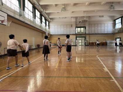 5年生は講堂で、元気におにごっこやバスケットボールをしていました!