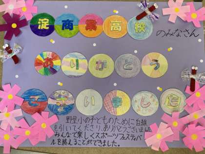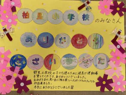 スポーツフェスティバルでお世話になった柏里小学校と淀商業高校に感謝の気持ちを伝えるメッセージを6年生が中心となって作りました。