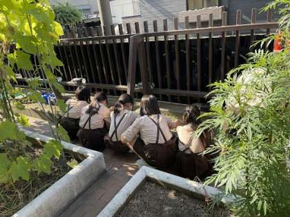 5年生は理科の時間、「流れる水の働き」を調べる実験をするために土をたくさん使うので、学習園の雑草抜きをしました!!