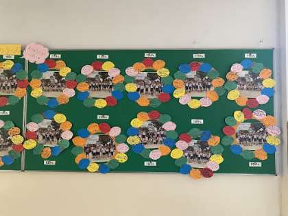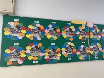 ありがとうのリースが完成しました!全校オリエンテーリングで一緒に活動した班のメンバーに、感謝の気持ちを伝えています。西校舎1階の掲示板をぜひご覧ください。