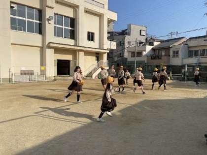 5年生が元気に運動場で鬼ごっこをしています。児童看護をしていた先生も参加しました!